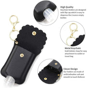 Khazna Portable Squeeze Bottle, Plastic Travel Bottle with Leather Keychain Holder for Hand Sanitizer, Essential Oil, Refillable Bottle Clips to Travel Bag (1 Pack Pink+1 Pack Black)