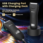 ENSSU Body Trimmer for Men, Electric Manscape Hair Trimmer, Waterproof Ball Trimmer for Chest, Beard, and Pubic Hair with LCD Display, Recharge Dock