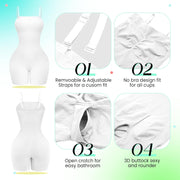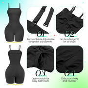 Adjustable Straps & No Compression Bra Design??Body shaper for women have adjustable elastic shoulder straps.You can adjust the straps according to your need to have a better fit.Wide shoulder is soft enough to wear all day long. Our tummy control shapewear bodysuit does no compression bra ,not tight, not oppressive,which fit for all cups.So that you can wear your favorite bra to help to lift the line of chest and show your hourglass shape figure