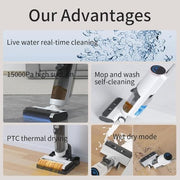 Smart Wet Dry Vacuum Cleaner, Cordless Floor Mop with Self-Cleaning, Dual-Sided Edge Cleaning, Long Runtime