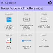 HP 15 inch Laptop, HD Display, 13th Generation Intel Core i5-1334U, 8 GB RAM, 512 GB SSD, Intel Iris Xe Graphics, Windows 11 Home, 15-fd (2024)