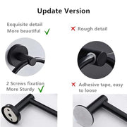 Built with long-lasting SUS304 stainless steel, toilet paper holder is made in heavy duty structure and designed in open-arm. Round shape towel holder and concealed screws design no sharp corner makes it safe for your family, especially for your child. The quiet, matte black colour creates a modest look. Minimalist style, clean beautiful lines, gives your bathroom a sleek appearance.
