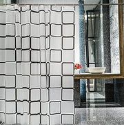SKY-TOUCH Transparent Shower Curtain, Square Printed Design, Eco-Friendly Waterproof Heavy Duty with Anti-Mold Grid for Bathroom and Bath Tub, 180x200cm