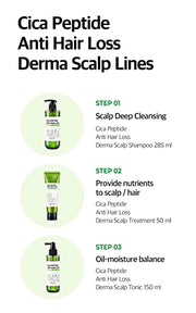 Some By Mi Cica Peptide Anti Hair Loss Derma Scalp Shampoo is formulated with high concentration of cica ingredients. Alleviates the stressed-out scalp and trouble. Nourishes scalp with biotin and proteins from bean, wheat and corn. Help achieve healthy hair. Calms down and offers regenerative effect to irritated scalp with cica. Infused with PHA to absorb dead skin cells, impurities and sebum to create a clean scalp environment.