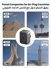 - ?One Charger in Hand, Various Countries to Go?Accepts Devices with UAE/KSA/UK Plugs for Use in Type C Sockets in Europe. Enables you perfectly travel to over 90 countries such as Egypt, Kuwait, Algeria, Morocco, Oman, Sudan, Turkey, and EU like Germany, France, Italy, Spain, Poland, Portugal, Russia, and the popular tourist countries like Thailand.