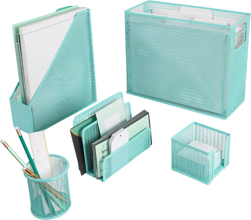 Blu Monaco 5 Piece Cute Office Supplies Aqua Desk Organizer Set - with Desktop Hanging File Organizer, Magazine Holder, Pen Cup, Sticky Note Holder, Letter sorter - Aqua Desk Accessories