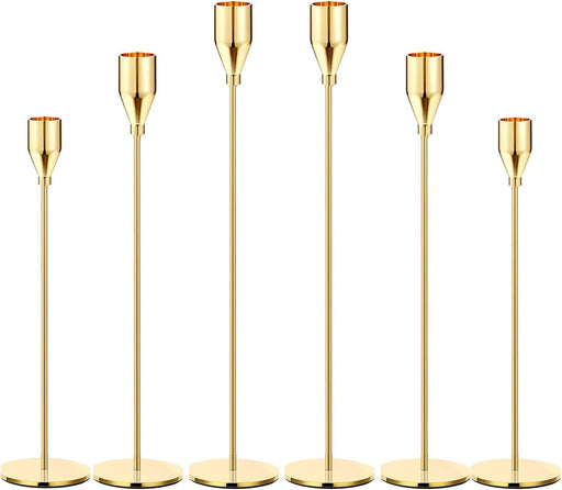 Loiisgy 6Pcs Gold Candle Holders, Tall Candle Holder for Long Candles, Metal Gold Taper Candle Holder for Wedding, Dinning, Party, Decor Centerpieces for Table Manners