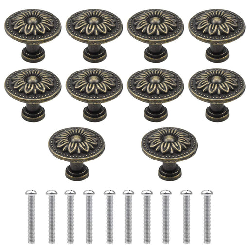 NATUCE 10PCS Antique Bronzy Flower Round Cabinet Knob, 32MM Vintage Drawer Knob, Kitchen Cabinet Cupboard Door Drawer Pull Knob, Retro Bronze Drawer Pull Handle, Hardware Knobs for Drawer Wardrobe