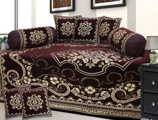 FRESH FROM LOOM Velvet Abstract 500 TC Diwan Set Brown - 1 Single Bedsheet with 2 Bolster Covers and 5 Cushion Covers (8pc Set)