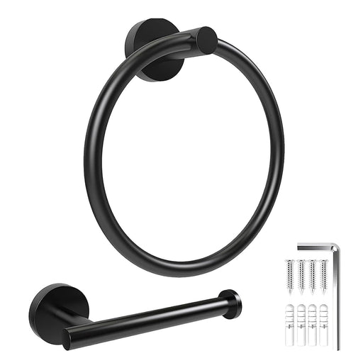 Bathroom Hardware Set: Toilet Paper Roll Holder and Towel Ring HolderBuilt with long-lasting SUS304 stainless steel, toilet paper holder is made i...