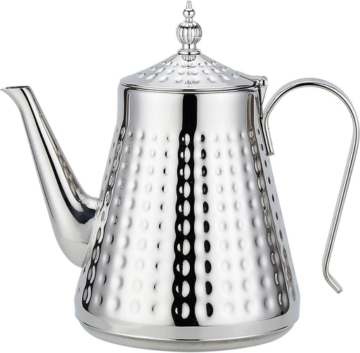 SANQIAHOME 1.6L(54oz) Stainless Steel Hammer Patterned Teapot With Removeable Infuser,Loose leaf cover,Silver