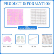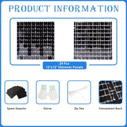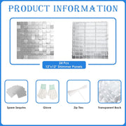 Package Includes: Each box comes with 12 pieces 12"x12" sequin panels and matching assembly materials, including gloves, zip ties,spare sequin pieces,installation tools, disassembly tools and instruction manual.