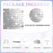 Kate Shimmer Wall Backdrop Sliver Wall Panels 12Pcs Square Sequin Shimmer Wall Backdrop Decoration for Birthday Party,Wedding, Anniversary