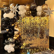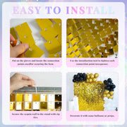 Easy to Install:Assembly is quick and easy with our shimmer wall backdrop panels! The shimmer wall panel comes with snaps on the side, which splices the panels into a whole block and fix it on the shelf with ties.