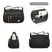 NALACAL Crossbody Bag for Women, Nylon Shoulder Purse Handbag Messenger Bag, Trendy Pocketbooks, Waterproof and Multi-Pockets (Black)