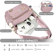 With dimensions of 12.2" x 9.4" x 5.9", our crossbody bag is spacious enough for your daily essentials while remaining lightweight and not bulky. Made from durable and soft polyester, this bag is water-resistant and easy to care for.