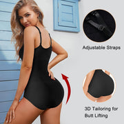 AOSBOEI Women Bodysuit Tops Shapewear Seamless Tummy Control Slimming Waist V Neck Sculpting Jumpsuits Body Shaper, Black, M/L