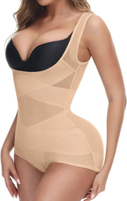 Breathable Mesh Fabric: The skin friendly body shaper for women with hexagonal fine mesh designed to uniformly apply pressure to the body through high stretch,breathable and lightweight sheer fabric.The soft waist cincher shapewear keeps your skin breathable and comfortable all day long. Designed to flatten your belly and enhance your natural contours, this body shaper for women bodysuit offers moderate compression to gently hug your body, reducing waist size while comfortably supporting you throughout the day.