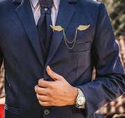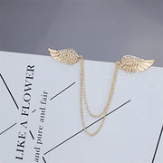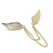 ELECDON Angel Wings Tassel Chain Brooch Collar Pins -Rhinestone Metal Feather Lapel Pin, Suit Coat Breastpin for Women Men's Accessories, Pins Men Fashion Gold Silver Plated Crystal Jewelry