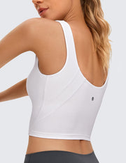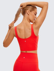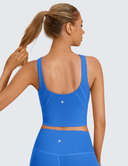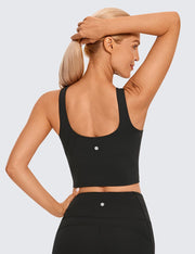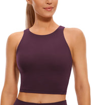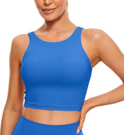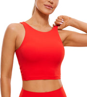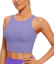 CRZ YOGA Womens Butterluxe High Neck Longline Sports Bra - U Back Padded Crop Workout Tank Top with Built in Bra