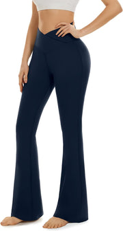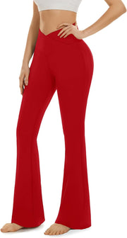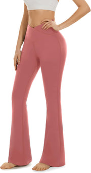 Aoliks Crossover Flare Leggings for Women,High Waisted Bootcut Yoga Pants Workout Bell Bottom Leggings