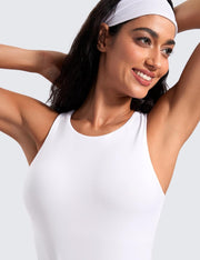 CRZ YOGA Butterluxe Womens Racerback Workout Tank Top with Built in Shelf Bra - Padded High Neck Yoga Athletic Camisole