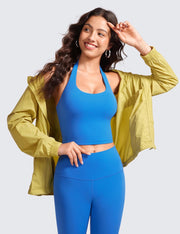CRZ YOGA Womens Butterluxe Halter Longline Sports Bra - Padded Workout Yoga Crop Tops Tanks with Built in Pads