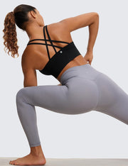 CRZ YOGA Womens Strappy Longline Sports Bra - Medium Impact Criss Cross Yoga Padded Bras Workout Crop Top