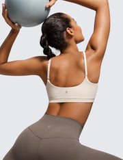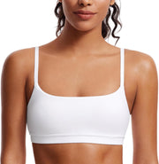 CRZ YOGA Womens Butterluxe Adjustable Spaghetti Strap Sports Bra - Scoop Neck Wireless Padded Bra Yoga Workout Crop Top