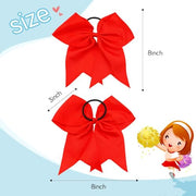 2 Pcs White 8 Inch Large Ponytail Holder Bows - Softball & Cheerleading Hair Scrunchies for Girls, Perfect Cheerleader Hair Accessories (1 Count (Pack of 2),red)