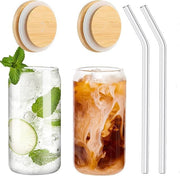 2PCS Drinking Glasses with Bamboo Lids and Glass Straw, Beer Can Shaped Glass Cups, Tumbler Cup Ideal For Beer, Tea, Soda, Iced Coffee Include 500ml