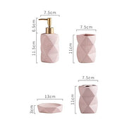 4 Pieces Bathroom Accessories Set Matte Ceramic Diamond Pattern Bath Ensemble Bath Set Collection Soap Dispenser Pump -Toothbrush Holder - Tumbler - Soap Dish (Pink), (Without the Tray)