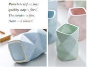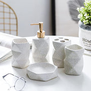 6 Pieces Bathroom Accessories Set Matte Ceramic Diamond Pattern Bath Ensemble Bath Set Collection Soap Dispenser Pump -Toothbrush Holder - Tumbler - Soap Dish.