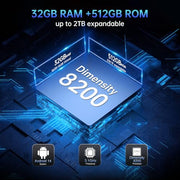8849 Tank Pad Android 14 Tablet 10.95 inch, 21000mAh 5G Unlocked Tablet with Projector, 32GB蘇(2TB Expand) Waterproof Tablets for Adults, 32MP Camera/66W Charger/Camping Light/WiFi/GPS/OTG
