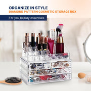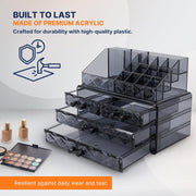 AC&L Makeup Organizer, Cosmetic Storage Display Box With 4 Drawers For Make Up, Brushes, Perfumes, Skincare All In One, Acrylic Organizer Ideal For Vanity, Dresser, Bathroom For Girls & women (Clear)