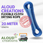 Aloud Creations presents PVC coated anti-rust steel rope/ wire for drying clothes. It has a length of 20 meters and comes with 2 Plastic Hooks. Package includes, 4 number of 20-meter clothesline/ metal rope.