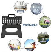 Compact plastic foldable step stool for bathroom or fold up stool is not just a functional necessity; it's a smart storage solution. When not in use, effortlessly fold and stow it away, open easy with one flip, indoor outdoor, ensuring your space remains clutter-free.