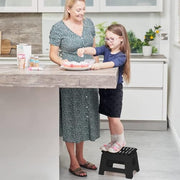 AMERTEER Folding Step Stool For Kids | Stepping Stool | 11 Inches Wide And 8 Inches Tall Foldable Step Stool Holds Up To 300 Lbs | Plastic Collapsible Step Stool For Bathroom, Garden & Kitchen (Black)