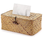 Rectangular Woven Tissue Box Cover, Decorative Seagrass Wicker Tissue Box Holder, Rustic Facial Tissue Holder for Bathroom Vanity Toilet Dresser Table Countertop Office Car