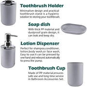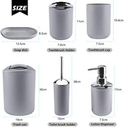 Arabest Bathroom Accessories Set, 6 Piece Plastic Bath Ensemble Bathroom Sets Accessories, Bathroom Decor Sets Accessories for Decorative Countertop and Housewarming Gift (Grey)