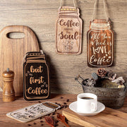🎨 UNIQUE SET OF SIGNS: You will receive four distinct coffee-themed signs, each with unique designs inspired by classic jar patterns. These signs add a vintage farmhouse touch, ideal for kitchens, coffee bars, and restaurants.