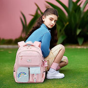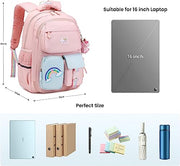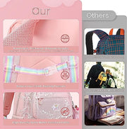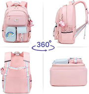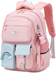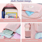Azonee Backpack for Girls, Wide Open Elementary Primary Middle School Bags with Many Compartments, Safety Reflective Strip, Waterproof, Large Capacity, for Kids, Teens, Pink