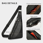 - ✅ã€Enhanced Anti-theft Protection】Designed to fit securely across your chest, this single sling bag helps prevent theft while freeing your hands. A hidden anti-theft pocket on the back provides a safe space for valuables like bank cards, ID cards, and passports. Ideal for business, work, or outdoor activities.