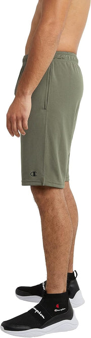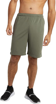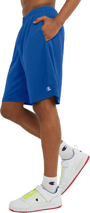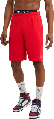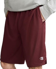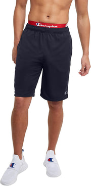 THE LONG LENGTH YOU'LL LOVE - These performance training shorts have a 10" Inseam that hits at the knee in basketball shorts style..THE CHAMPION LOGO - The iconic C Logo is displayed at the left hem..QUALITY FABRIC - These knee-length gym shorts are made of 100% polyester.