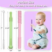 ?SOOTHING TEXTURES?Each one of our chewable tube have 2 different soothing textures. More conducive to reducing baby to put finger, spoon and toothbrush in mouth to gnaw on. Silicone hollow teether straws are durable and flexible. Teethers for babies 12-18 months can use for a long time.