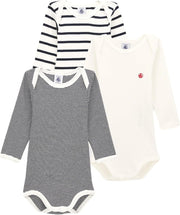 3 long sleeve bodysuits in the rib, the iconic material of Petit Bateau.