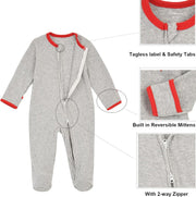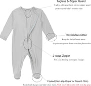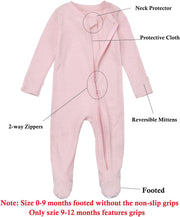 ?Built-in Mittens and Footed?All sizes design with reversible mitten hand covers to prevent baby from scratching themselves. This 9-12 months baby footie pjs features grip on the feet for extra stability. Great for little baby on the move(0-9 months size without non-slip grips)