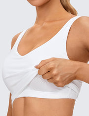 CRZ YOGA Butterluxe Womens V Neck Longline Sports Bra - Padded Workout Crop Tank Top with Built in Bra