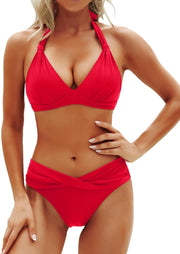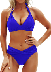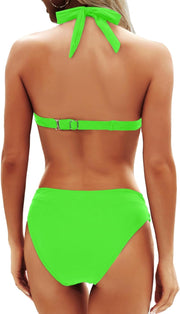 Yonique Women Two Piece Bathing Suits Push Up Bikini Set Halter Swimsuit Vintage Swimwear
