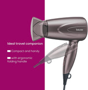 Beurer HC17 Compact Hair Dryer | Lightweight Hairdryer with Folding Function | 2 Heat & Blower Settings | 1300 Watts | Overheating Protection & Professional Nozzle | Foldable Handle for Travelling